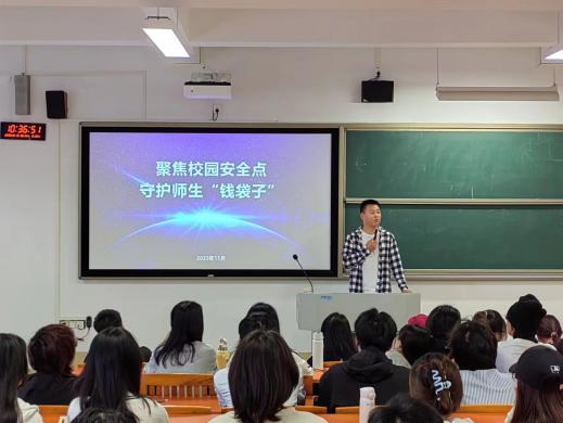 2023 年 11 月 15 日,数字创意学院开展了“防范金融诈骗,巩固安全底线”反诈知识宣讲会。会议由辅导员袁鑫帅老师主持。